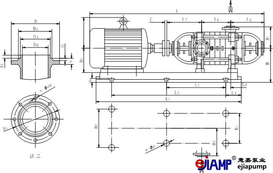 2、D型臥式多級離心泵主要零件有:進水段、中段、出水段、葉輪、導(dǎo)翼擋板、出水段導(dǎo)翼、軸、密封環(huán)、平衡環(huán)、軸套、尾蓋及軸承體。