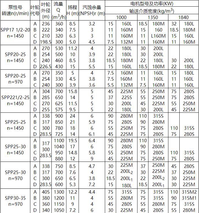 SPP不銹鋼化工混流泵--性能參數(shù):