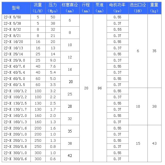 2J-X系列柱塞式計量泵--性能參數(shù):