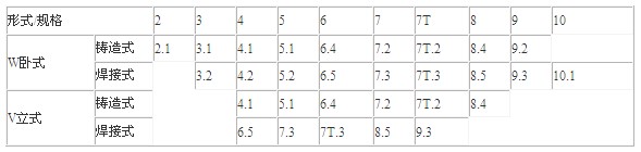 我公司雙螺桿泵分立式、臥式兩大類,規(guī)格有2,3,4,5,6,7,7T,8,9,10共10個,其品種與規(guī)格的型號組合見下表: