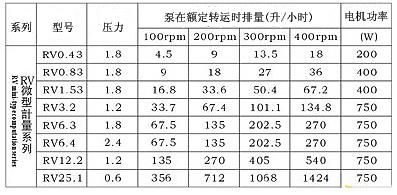 RV微型計量不銹鋼螺桿泵--性能參數(shù):