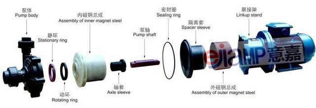 磁力驅(qū)動泵在石油、化工、制藥、電子等眾多領(lǐng)域,越來越多的廠家,對其輸送的介質(zhì)都要求無泄漏的工藝環(huán)境,迫切需要選擇理想的泵型,我公司生產(chǎn)的CQ系列磁力驅(qū)動泵吸收了國內(nèi)外領(lǐng)先水平的磁力泵生產(chǎn)新技術(shù)、新材料、新工藝,成功的解決了目前國內(nèi)磁力泵的隔離套、葉輪等部件易損壞的技術(shù)難題,使其性能更加完美。CQB、IMD、CQ、CQF系列磁力泵經(jīng)過使用單位長時間的生產(chǎn)性連續(xù)運(yùn)行考驗,越來越多的用戶確信他們所選的是最安全、最可靠的泵型,我們將一如既往的為廣大用戶提供更加優(yōu)質(zhì)的服務(wù)。意嘉泵業(yè)生產(chǎn)的ejiamp牌CQ磁力驅(qū)動泵是利用永磁聯(lián)軸器工作原理無接觸的傳遞扭矩的新型泵,當(dāng)原動機(jī)帶動外磁鋼轉(zhuǎn)子時,通過磁場的作用驅(qū)動內(nèi)磁鋼轉(zhuǎn)子同步旋轉(zhuǎn),而內(nèi)磁鋼轉(zhuǎn)子和葉輪連成一體,從而達(dá)到無接觸帶動葉輪轉(zhuǎn)動之目的。由于液體被封閉在靜止的隔離套內(nèi),所以磁力泵是一種全封閉、無泄漏的泵型,因此完全杜絕了機(jī)械密封離心泵不可避免的跑、冒、滴、漏的弊病。