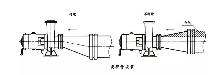 泵出口管道卜的異徑管府靠近泵的出口。頂部吸人和排出的泵,在間距很小時,可采用偏心異徑管加大間距。