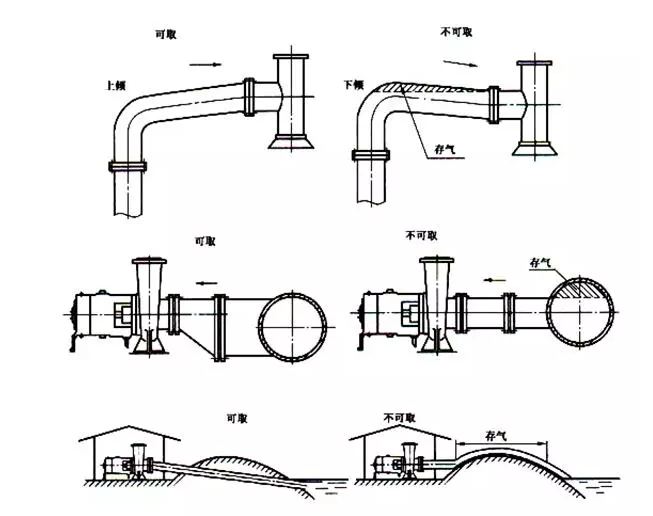 七、彎曲部位盡可能做到平緩,減少彎頭個數(shù),且要設(shè)法避免設(shè)置在靠近泵進(jìn)口部位。