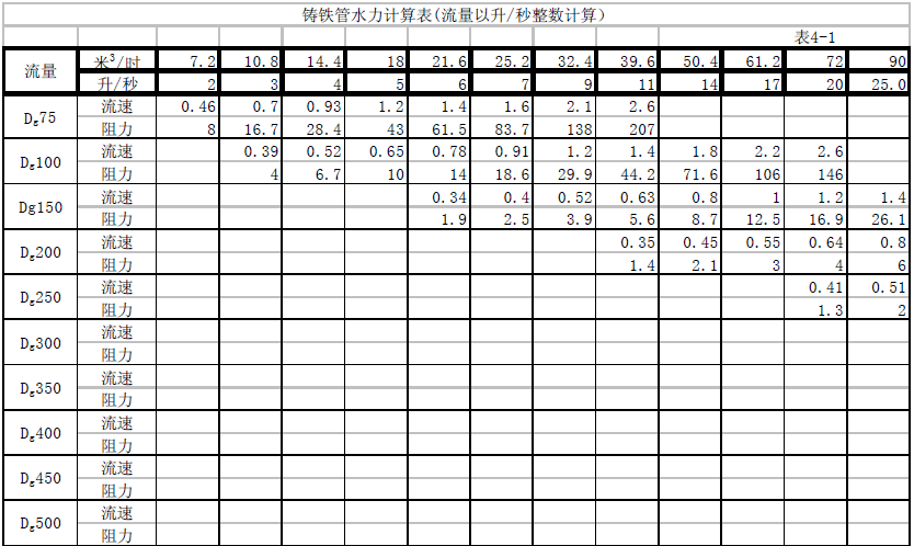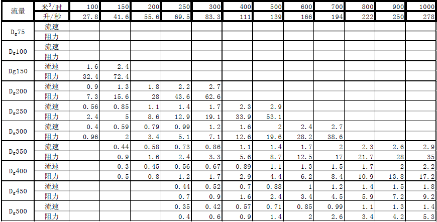 (1)將一條400米長的管道鋪設(shè)在比另一條高5米的斜坡上。這5米的差異產(chǎn)生5米的壓差。因此,如果從高端連續(xù)供水,則管道的流量必須為61.2噸/小時,流量必須為1米/秒。管道的坡道可以表示為5/400(讀作四分之四,400米是坡度的斜率。嚴(yán)格來說,坡度應(yīng)該用水平距離減去高度差來表示,因?yàn)樗骄嚯x略小于400米,因此真實(shí)坡度應(yīng)略大于5/400),但一般管道的坡度以千分之幾表示,5/400可轉(zhuǎn)換為{(5x2。 5)/(400x2.5)} = 12.5因此,該管道的斜率應(yīng)表示為12.51000,縮寫為12.5‰(讀數(shù)為12.5‰)。 該計(jì)算表明,如果Dg150管道以12.5托的斜率鋪設(shè),將確保水流速為1米/秒,流速為61.2噸/小時。 12.5英寸的斜率是管道的每個部分(1000毫米)的12.5毫米的高度差。 這個12.5毫米的水柱是Dg150管道的阻力,流速為61.2噸/小時(見表4)。