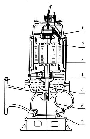 V。 WQ系列無(wú)堵塞固定式潛水排污泵產(chǎn)品結(jié)構(gòu)圖: