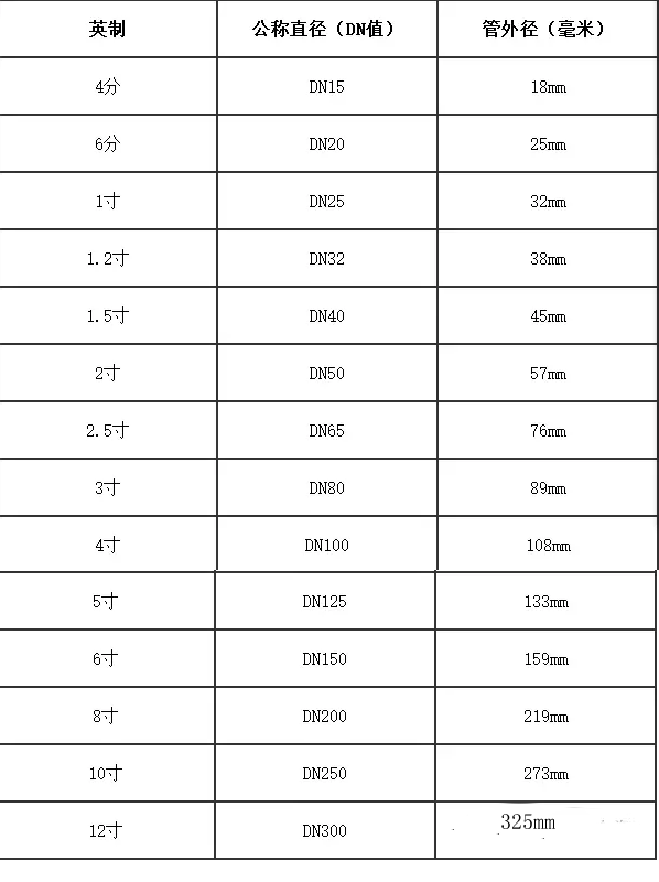 常用水泵的DN內(nèi)徑英寸及外徑的尺寸