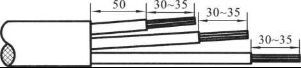 1)將潛水電機(jī)上的電纜按下圖示將銅芯剝出約30—35mm長,用砂布將銅絲擦干凈,發(fā)亮為宜,同樣將外接三芯電纜的銅絲也剝出30— 35_,用砂布擦干凈。