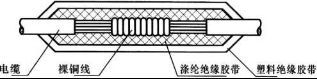 1)動(dòng)力電纜 2)聚氯乙烯粘帶 3)自粘性丁基橡膠帶 4)φ1mm銅線 5)焊錫 6)引出電纜