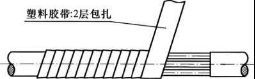5)按下圖示用塑料膠帶把三個(gè)線頭包在一起,包扎兩層。