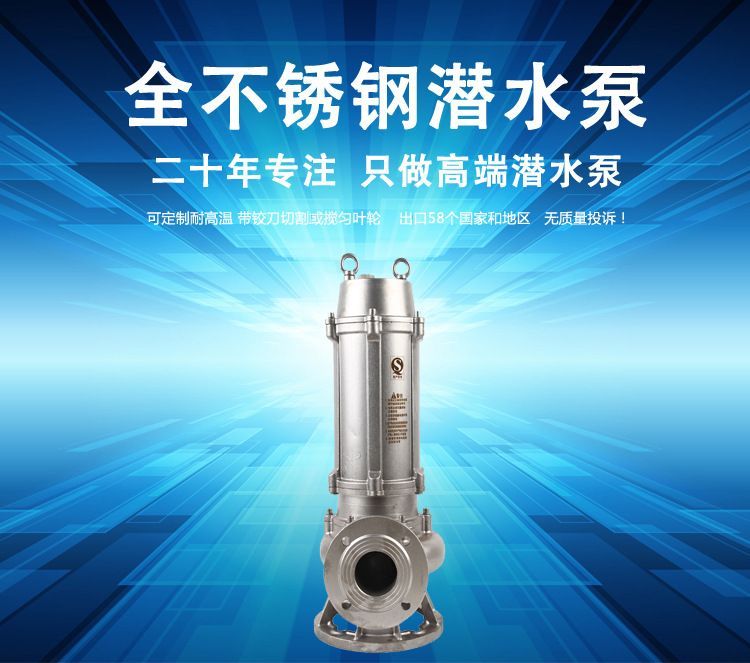 不銹鋼排污泵WQP型適用用于工廠商業(yè)嚴(yán)重污染廢水的排放、主宅區(qū)的污水排污站、城市污水處理廠派水系統(tǒng)、人防系統(tǒng)排水站、自來水廠的給水設(shè)備、醫(yī)院、賓館的污水排放、市政工程建筑工地、礦山配套附機(jī)、農(nóng)村沼氣池、農(nóng)田灌溉等行業(yè),輸送帶顆粒的污水,污物,也可用于清水及帶弱腐蝕性介質(zhì)。