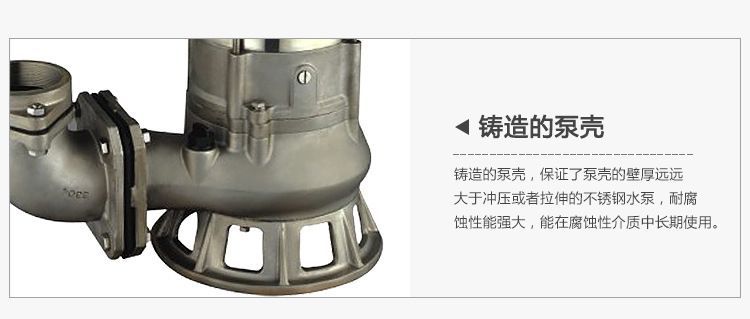 1、整體外殼采用不銹鋼SUS304 SUS316材質(zhì)精密鑄造制成,專門抽取有微酸弱堿的污水。