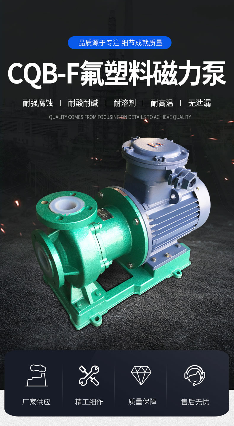 襯氟磁力泵CQB65-50-125F系列廣泛適用于化工、制酸、制堿、冶煉、稀土、農藥、染料、醫(yī)藥、造紙、電鍍、電解、酸洗、無線電、化成箔、科研機構、國防工業(yè)等行業(yè)。適用溫度:-20°C-100°C