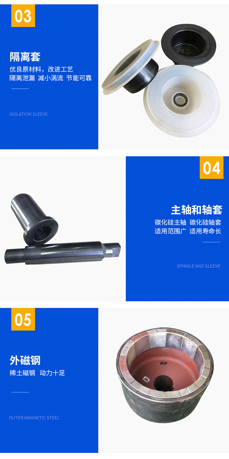 ejiamp/意嘉襯氟磁力泵CQB65-50-125F驅動裝置采用主動磁鐵聯(lián)軸器直接裝在電機軸上,離心泵室完全封閉,通過磁力偶合間接氟塑料磁力驅動泵軸上帶磁鐵的葉輪旋轉結構緊湊、安全節(jié)能。