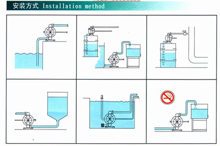 4、另外氣動隔膜泵體積小易于移動,不需要地基,占地面極小,安裝簡便經(jīng)濟。可作為移動式物料輸送泵。