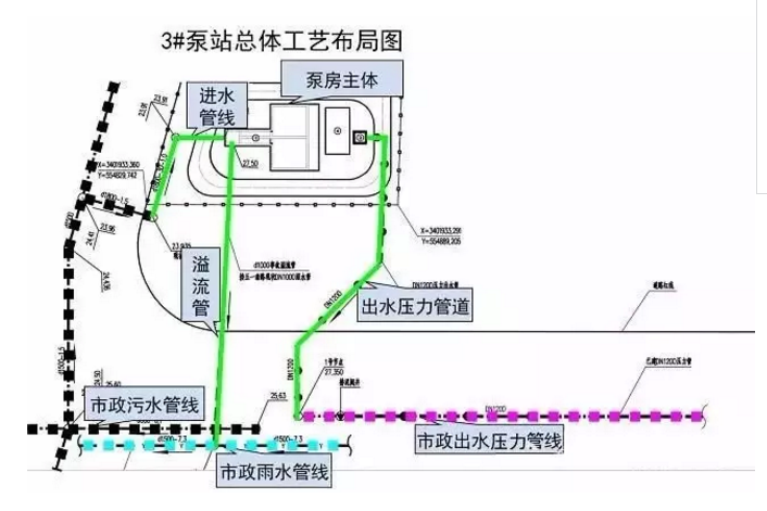 進(jìn)水管線:站外污水進(jìn)入泵站