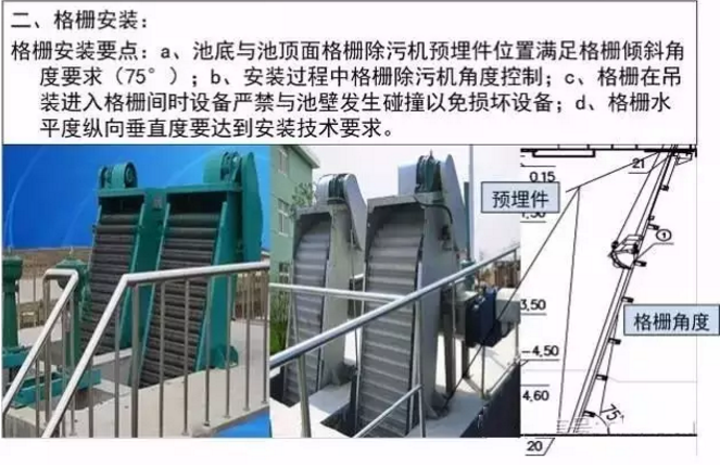 格柵:將污水中較大尺寸雜物過濾清除至外運(yùn);