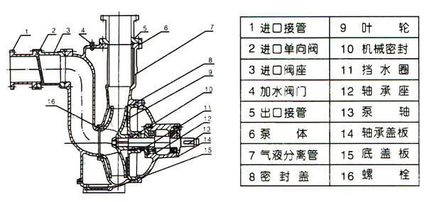第二次工作時(shí)泵吸入口處裝有單向逆止閥,因此不需再加儲(chǔ)水即可起動(dòng)。
