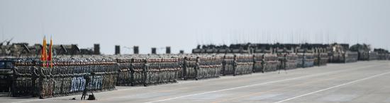 7月30日,慶祝中國(guó)人民解放軍建軍90周年閱兵在位于內(nèi)蒙古的朱日和訓(xùn)練基地舉行。中共中央總書(shū)記、國(guó)家主席、中央軍委主席習(xí)近平檢閱部隊(duì)并發(fā)表重要講話。這是受閱部隊(duì)。